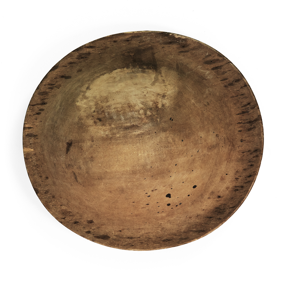 Side view of large round and shallow beret with the edges sightly tilted. Slight view from the top of this shallow round beret style hat block. This is a large round and relatively shallow beret. Top view of large round and relatively shallow beret.