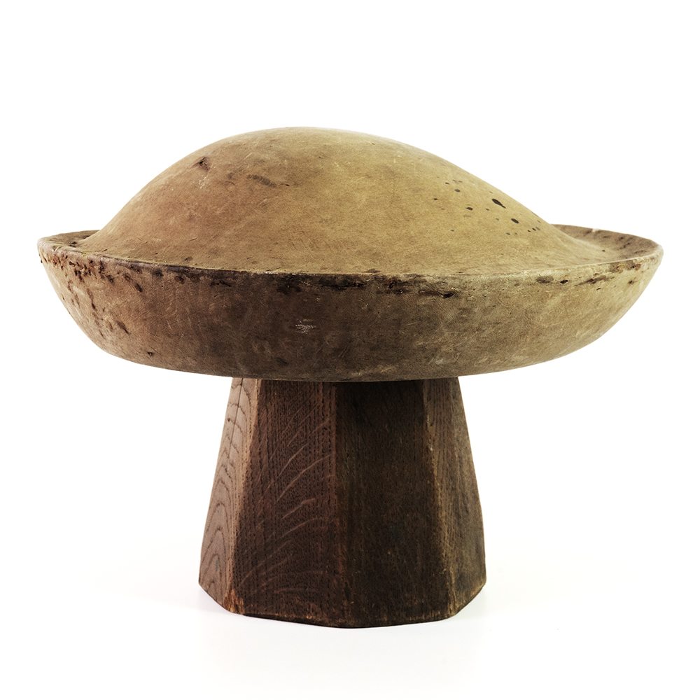 This is a relatively large round beret style hat block with a shallow top. A great hat block to create historical or vintage style hats.