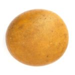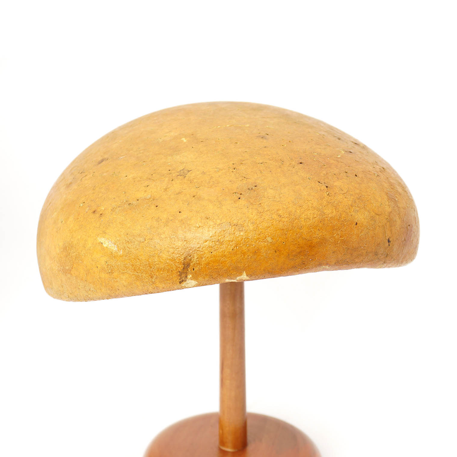 This is a shallow flat beret hat block with a slightly domed top.